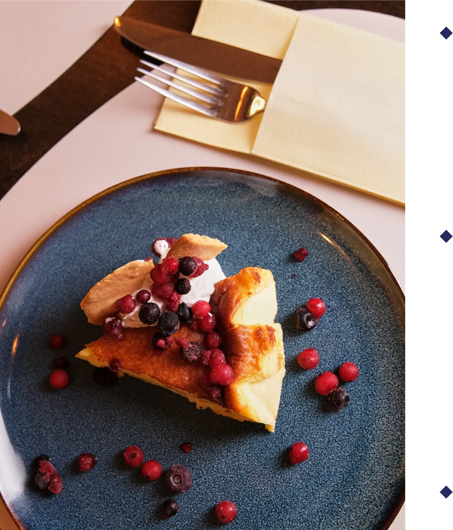 Tarta de queso casera con topping y crema de pistacho natural.